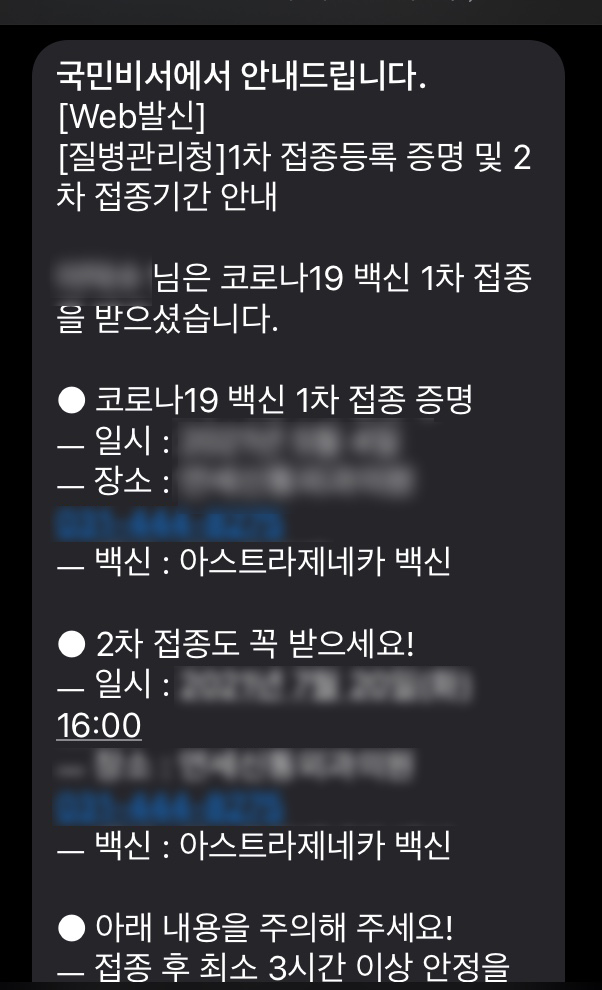 그래서 대신 맞을 수 있는 사람을 찾는 중 제게 연락이 왔고 즉시 병원예약을 하여(백신은 예약된 사람만 맞을 수 있습니다.) 접종하게 되었습니다. (이렇게 맞은 것은 백신 접종수칙을 위반 한것이 아닙니다.)
