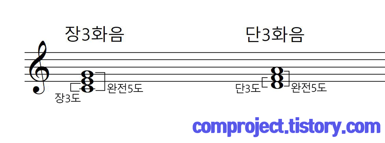 밑에 음을 근음(root)이라고 하고 두 번째음은 3도위의 음이라 3음, 세 번째음은 5도음의 음이라 5음으로 부릅니다.