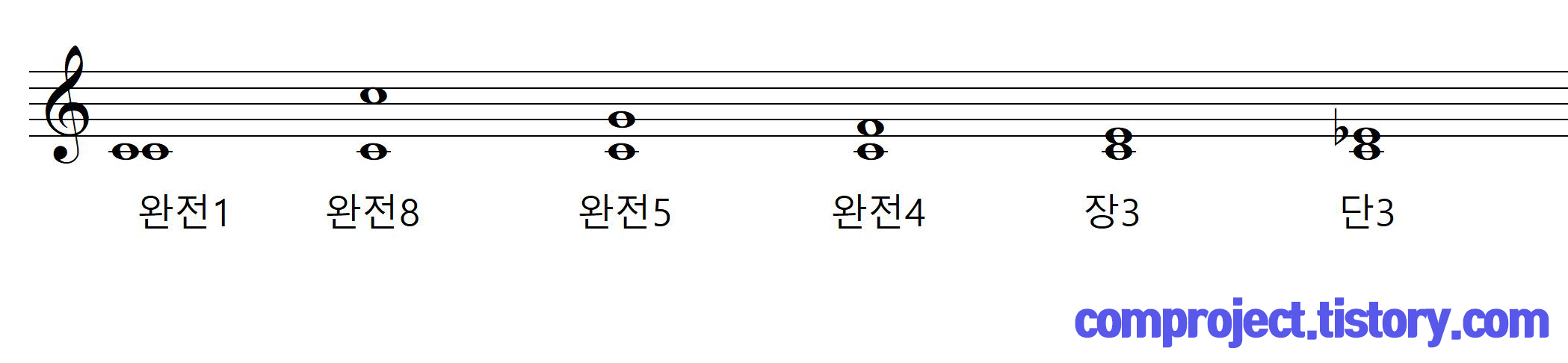 화음은 앞서 공부한 ‘음정’관계에 따라 잘 어울리는지 여부를 파악할 수 있습니다. 그리고 배음관계도 이것에 똑같이 적용됩니다. 배음을 모르신다면 여기를 (comproject.tistory.com/5) 음정을 모르시면 먼저 여기를 참조하세요. (comproject.tistory.com/11)