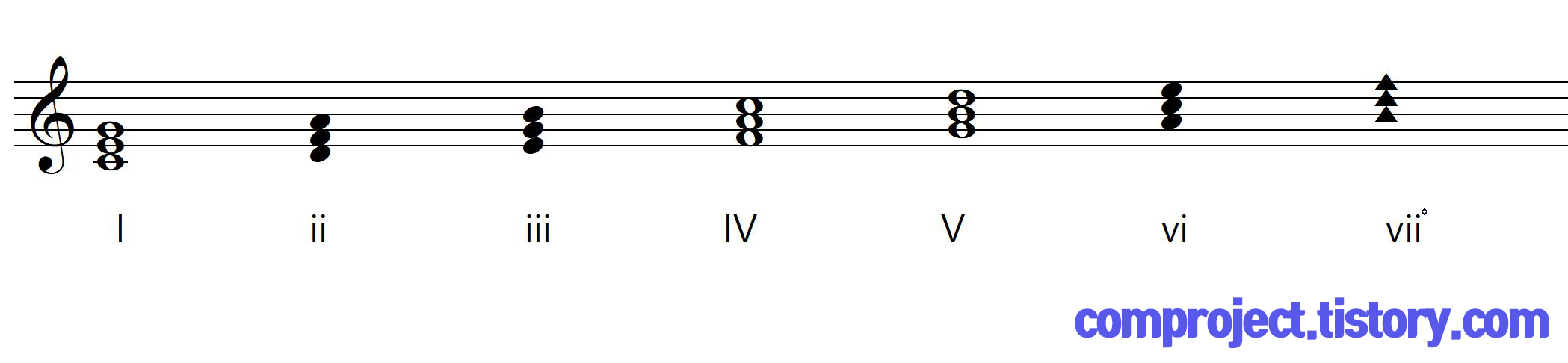 vii도는 화음의 성질이 다릅니다.(감3화음) 이것은 나중에 다시 설명합니다.