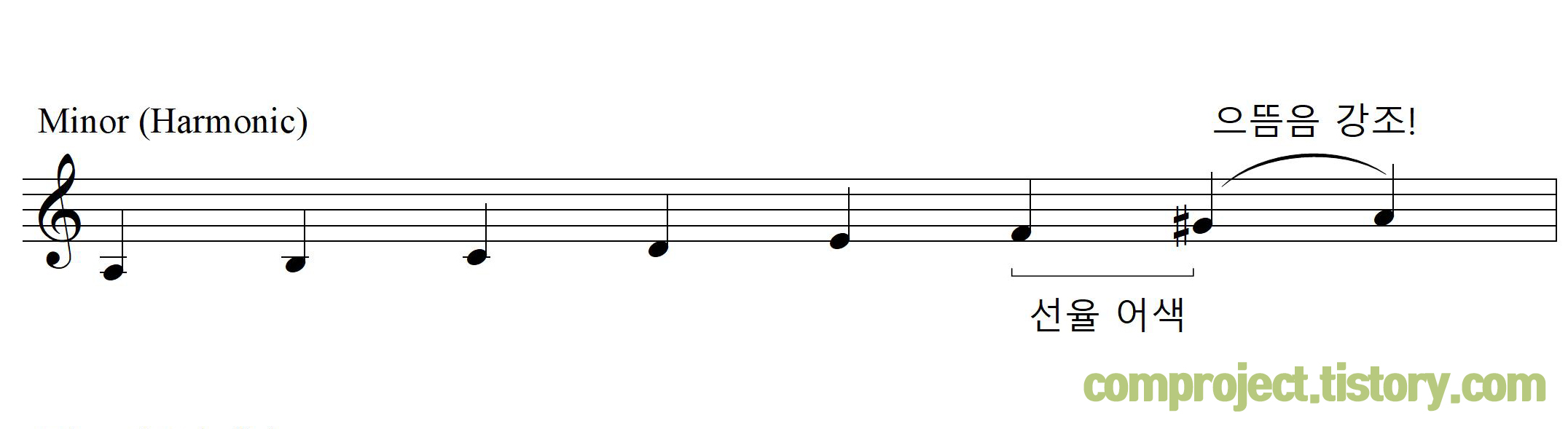 화음으로 tonic만큼 중요한 위치를 차지하는 Dominant에 힘을 주면 화성단음계