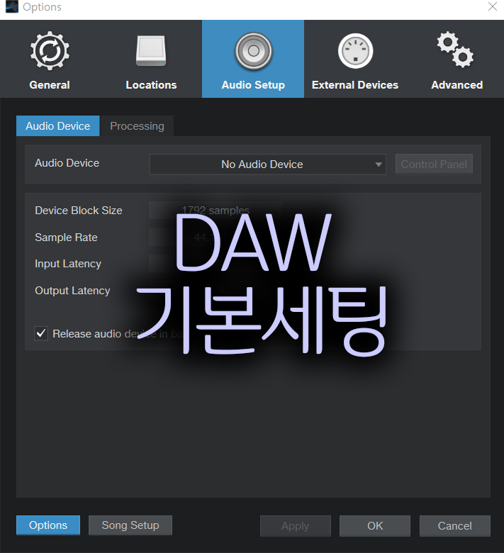 그러나 아직도 유저들이 어려워하는 것은 Set up입니다. 이번 포스팅에선 DAW의 셋업 기본을 다루어 보겠습니다.
