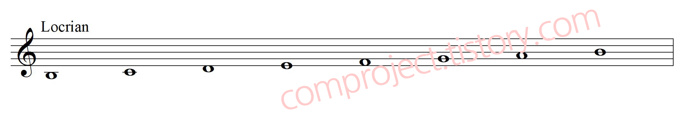보시면 알겠지만 하나의 장조음계에서 으뜸음(Tonic)을 바꾸는 것으로 선법이 완성됩니다. 그런데 중세시대에서 엄청나게 듣기 거북하다고 여기는 음정관계가 있었습니다. 시-파로 만들어지는 감5도 음정을 좋아하지 않았습니다. 파-시의 증4도음정도 그리 좋아하진 않았습니다. 그런데 파-솔-라 에선 장조느낌이 나기 때문에 이후에 나오는 증4도 음정을 크게 불안해 하지는 않으나 시-도-레 로 시작하는 패시지는 단2-장2 간격의 불안감에 감5도가 추가되어 가장 불안정한 음계를 만들어 냅니다. 따라서 중세시대에서는 이 선법을 사용하지 않았습니다. 현대의 대중음악과 재즈에서는 이 선법은 Locrian(로크리안)이라 하며 자주 연주하고 있습니다.