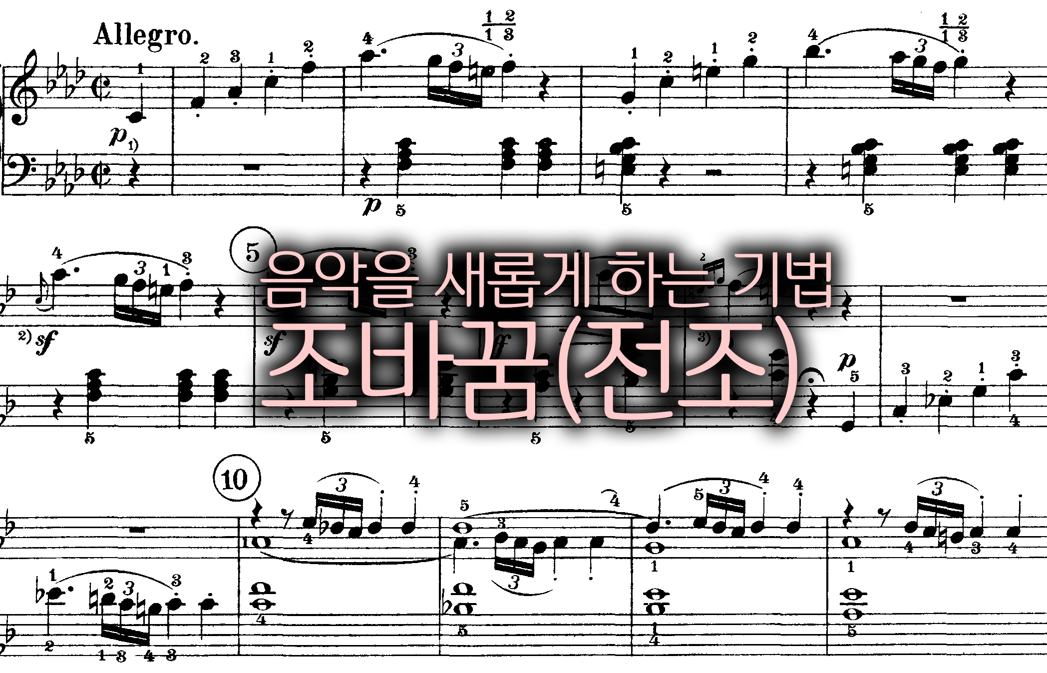 중심이 되는 조성을 계속 흔드는 효과가 일어납니다. 조성을 흔들게 되면 청중은 다른듯 다르지 않는 음악을 감상하게 됩니다. 이런 요소 하나만으로도 조바꿈은 청중이 지루할 틈을 주지 않으면서, 반복의 지루함을 덜어낼 수 있게 하는 좋은 도구로 쓰입니다.