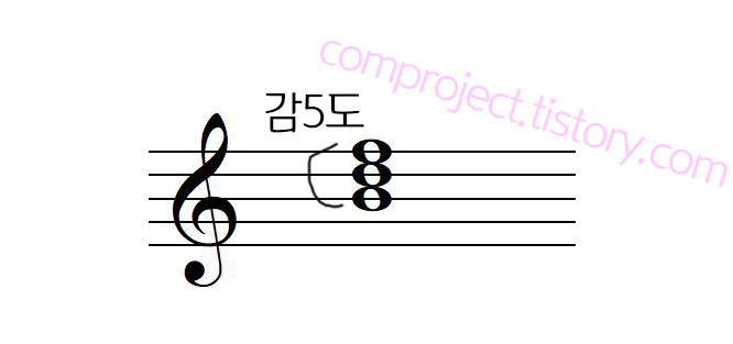 장3화음, 단3화음 외에(https://comproject.tistory.com/15 참고) 장, 단조 음계에서 만들어지는 화음이 감3화음입니다. 단3도+감5도로(단3도 위에 단3도) 구성되어 있는데 감5도의 특성상 반음 위의 음을 근음으로 하는 3도로 진행하려는 성질이 매우 강합니다. 화음 진행에서 가장 강력한 힘을 가지고 있으므로 이 화음의 속성을 이용한 진행이나 코드가 많습니다.