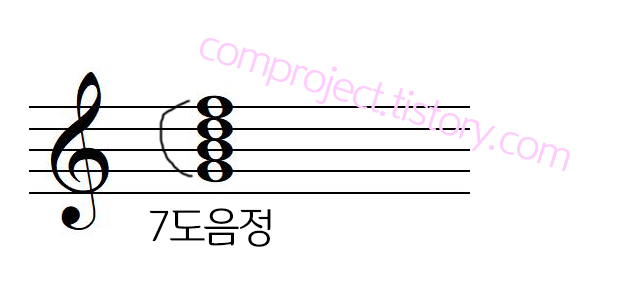 근음으로부터 7도 위의 음을 추가하는 화음입니다. 기본형은 3화음에서 7도위의 음을 첨가하는 것입니다. 모든 7화음은 불협화음입니다. 그렇기 때문에 정통화성학에서 7음은 예비-해결 과정을 거쳐야합니다. 대중음악에서 7음의 예비 해결은 엄격하게 적용하려 하진 않습니다.